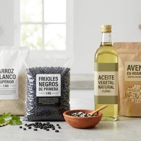 Todo lo necesario para tu cocina: aceite, arroz, frijoles, avena y más.